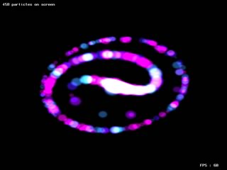 A little Blitz Max experiment I performed while trying to learn a bit about OpenGL. Nothing too clever, just a simple particle system with a couple of attractors. It does make pretty pictures though.